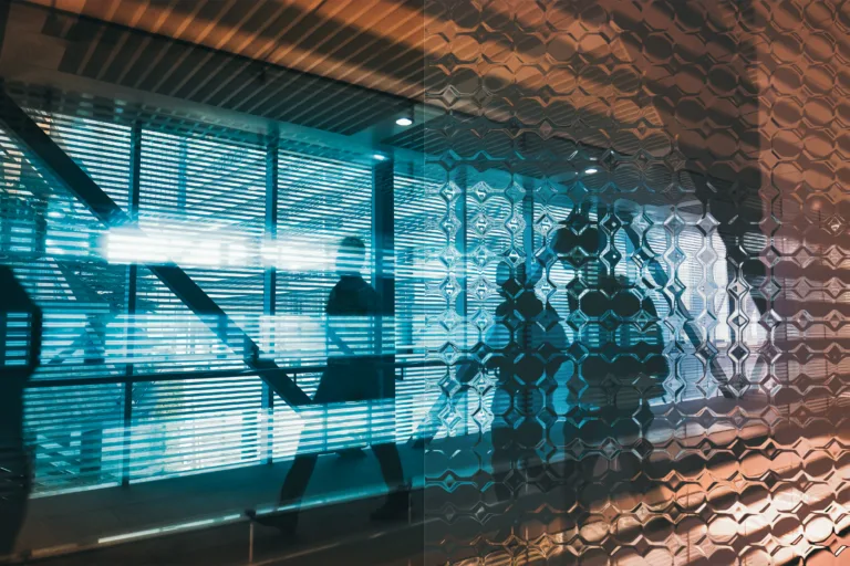 Minimalist metallic line design with angular silver bars forming abstract geometric shapes
