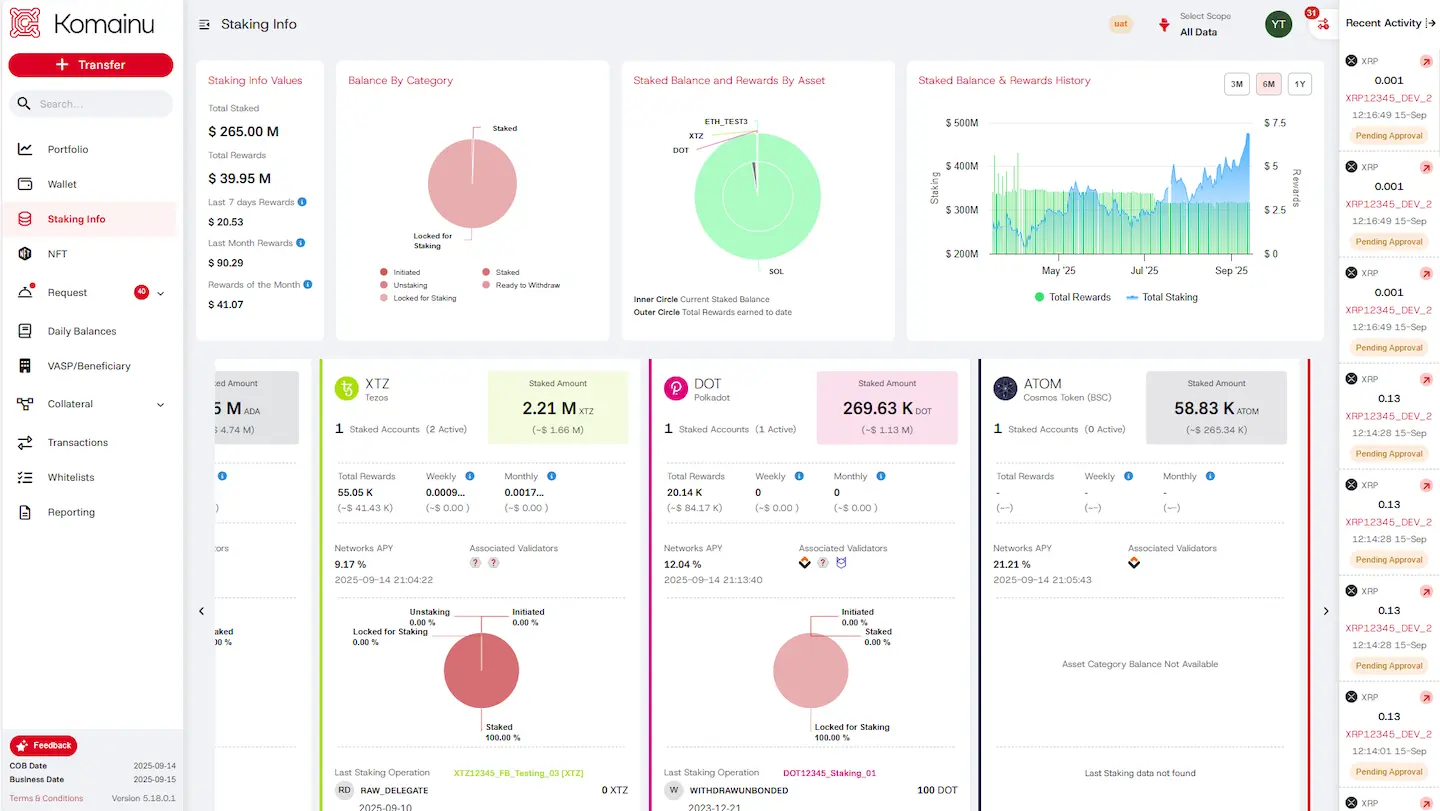 Through our bespoke staking solution, clients can earn blockchain rewards while assets remain in regulated, segregated custody.